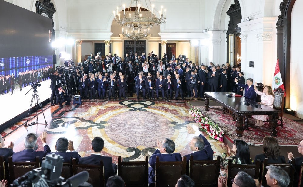 當(dāng)?shù)貢r(shí)間11月14日晚,國家主席習(xí)近平同秘魯總統(tǒng)博魯阿爾特在利馬總統(tǒng)府以視頻方式共同出席錢凱港開港儀式。