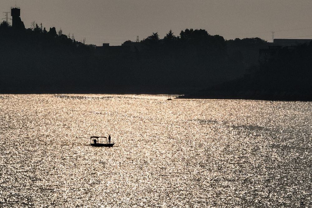 2024年10月28日,丹江口市清漂隊隊員在庫區(qū)進行清漂作業(yè)。