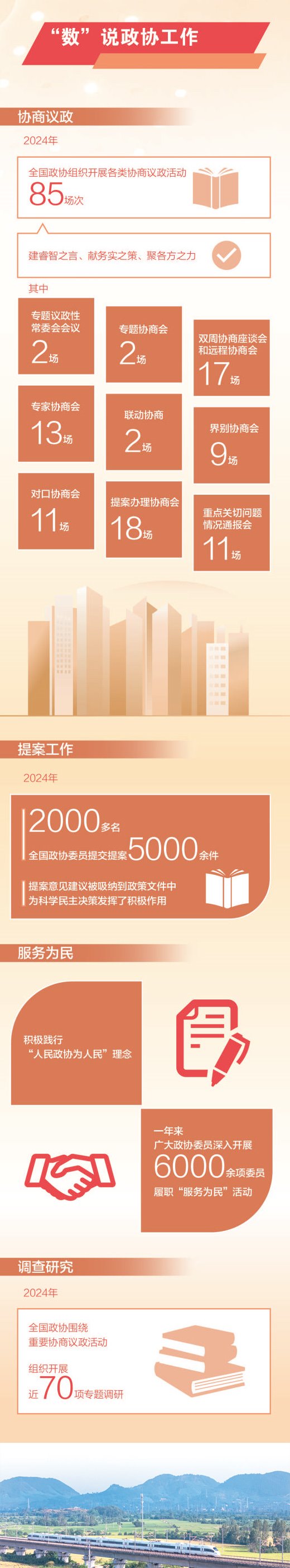 人工智能、綠色低碳、新質生產力、文化遺產保護、人口高質量發(fā)展、金融高質量發(fā)展……協(xié)商議題緊扣“國之大者”和民之關切;專題議政性常委會會議、專題協(xié)商會、雙周協(xié)商座談會、遠程協(xié)商會、專家協(xié)商會、界別協(xié)商會、提案辦理協(xié)商會……協(xié)商形式豐富多樣,過去一年,全國政協(xié)組織開展各類協(xié)商議政活動85場次。一年來,全國政協(xié)把協(xié)商議政工作放到黨和國家工作大局中精準定位、科學謀劃,聚焦推進中國式現(xiàn)代化,建睿智之言、獻務實之策、聚各方之力,協(xié)商議政質量和成效不斷提升。