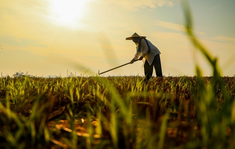 當(dāng)日是小暑節(jié)氣,農(nóng)民搶抓農(nóng)時(shí),忙碌在田間地頭。