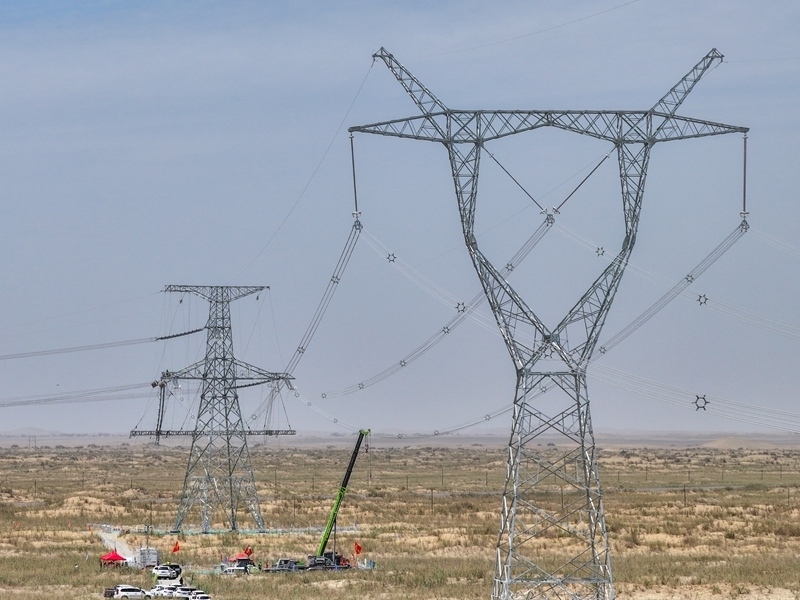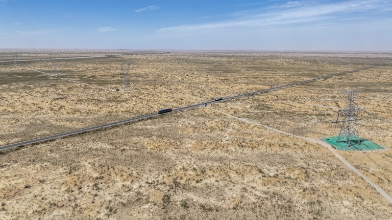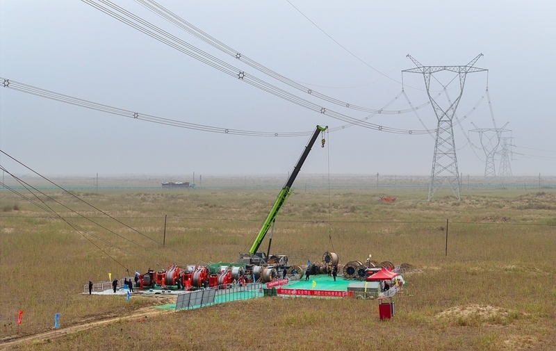 7月13日,在塔里木盆地南緣的新疆和田地區(qū)民豐縣,隨著牽引機(jī)將最后一段電線成功從183號(hào)鐵塔拽至188號(hào)鐵塔,標(biāo)志著歷時(shí)15年建設(shè)的環(huán)塔里木盆地750千伏輸變電工程全線貫通,形成了一條圍繞塔里木盆地的750千伏超高壓輸電環(huán)網(wǎng)。