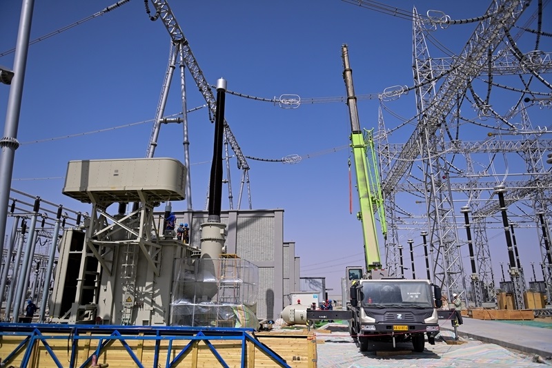這是建設(shè)中的新疆環(huán)塔里木盆地750千伏輸變電工程且末750千伏變電站(6月25日攝)。