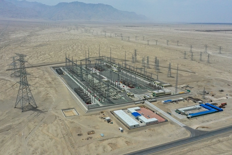這是已經(jīng)投運(yùn)的新疆環(huán)塔里木盆地750千伏輸變電工程若羌750千伏變電站(6月27日攝)。