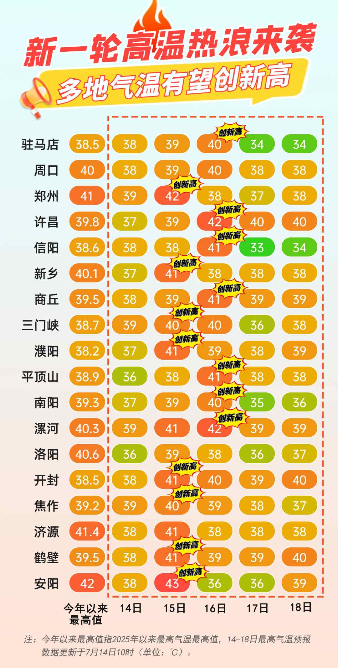 昨日(14日),河南多地氣溫沖破40℃,省、市兩級氣象臺相繼拉響最高級別的高溫紅色預警。據省氣象臺數(shù)據,當天全省共發(fā)布128條高溫預警,71個縣市氣溫高于40℃。