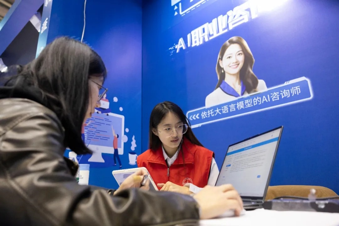 3月26日,在哈爾濱工業(yè)大學(xué)一校區(qū)體育館內(nèi),學(xué)生在體驗AI職業(yè)咨詢。張濤 攝