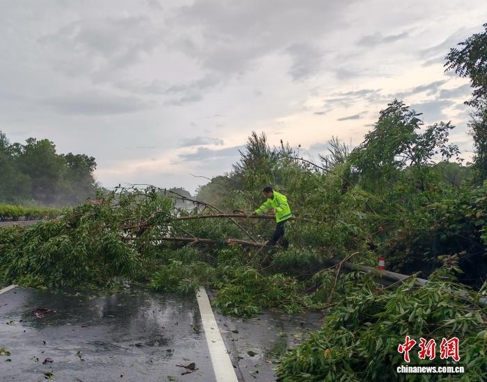 21日,云梧高速路政員清理被臺風(fēng)吹倒的樹木。劉朦 攝