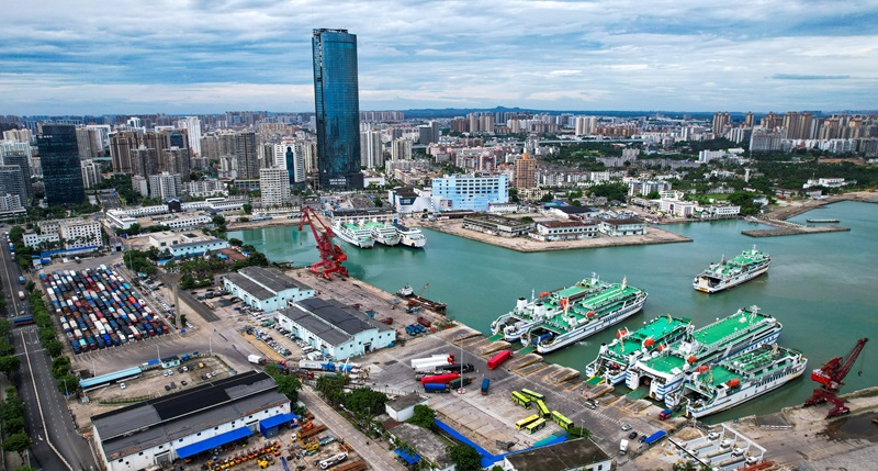 這是7月22日拍攝的恢復通航后的海口市秀英港(無人機照片)。