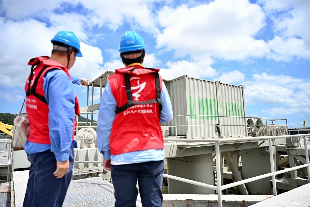 圖為國網(wǎng)舟山供電公司工作人員為浙江LHD海洋潮流能發(fā)電工程開展日常巡檢工作。新華社記者劉銘翔 攝