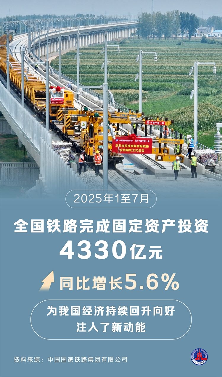 今年以來,我國多地鐵路項目建設(shè)優(yōu)質(zhì)高效推進。記者16日從中國國家鐵路集團有限公司獲悉,今年1至7月,全國鐵路完成固定資產(chǎn)投資4330億元,同比增長5.6%,為我國經(jīng)濟持續(xù)回升向好注入了新動能。
