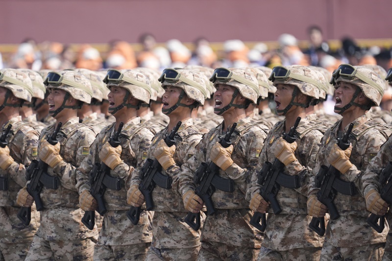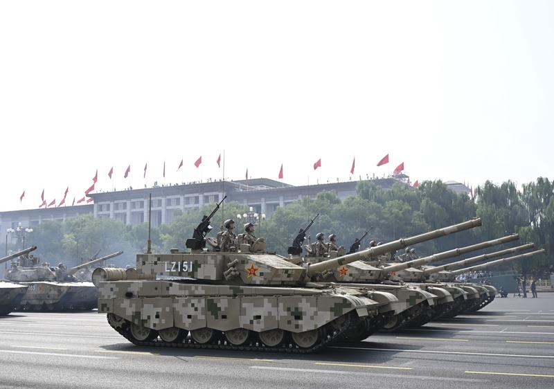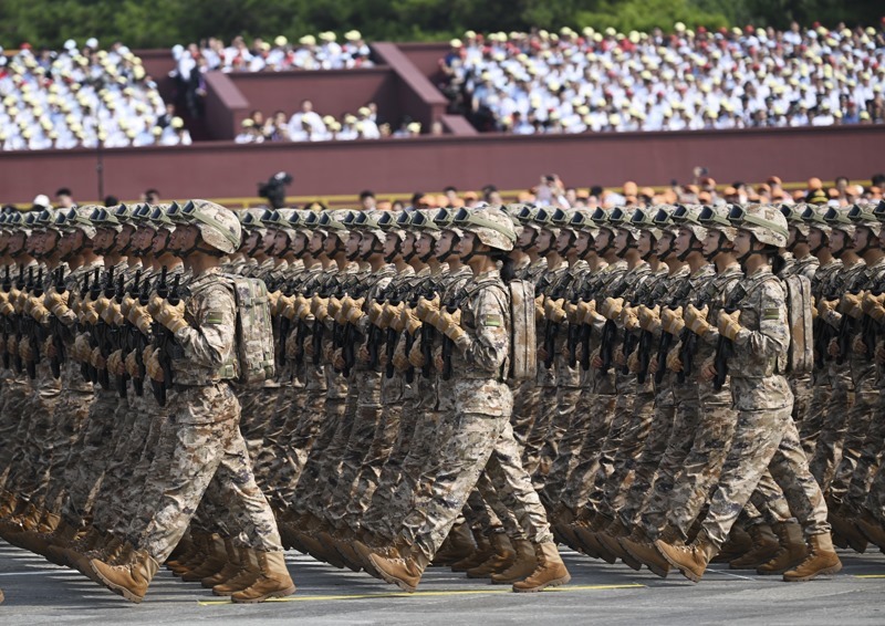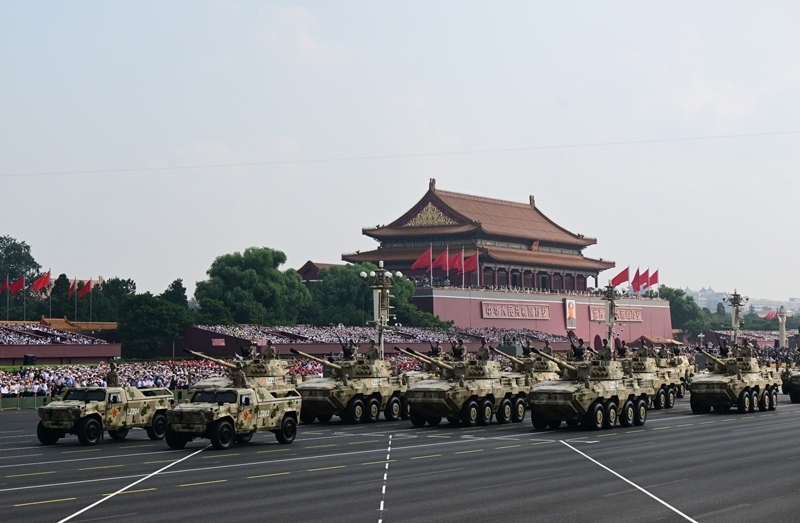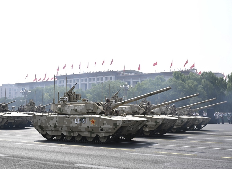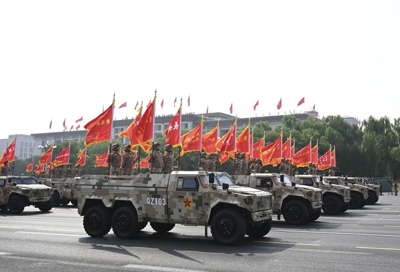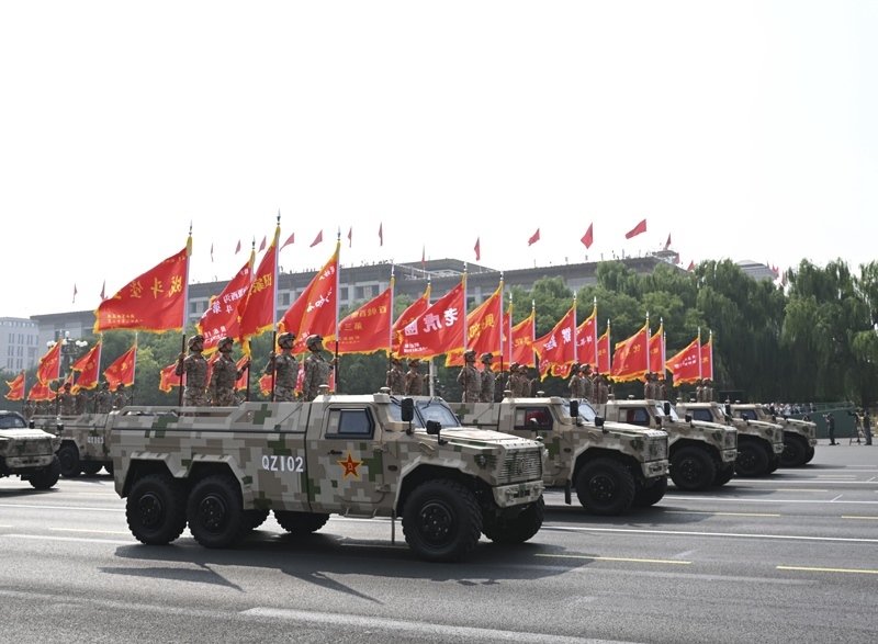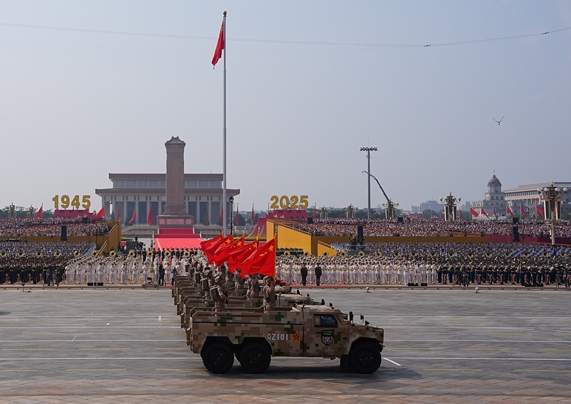 9月3日,紀(jì)念中國人民抗日戰(zhàn)爭(zhēng)暨世界反法西斯戰(zhàn)爭(zhēng)勝利80周年大會(huì)在北京隆重舉行。這是地面突擊方隊(duì)接受檢閱。