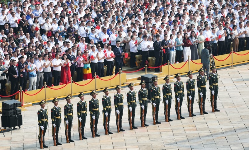 9月3日,紀(jì)念中國人民抗日戰(zhàn)爭(zhēng)暨世界反法西斯戰(zhàn)爭(zhēng)勝利80周年大會(huì)在北京隆重舉行。這是標(biāo)兵和觀禮嘉賓。