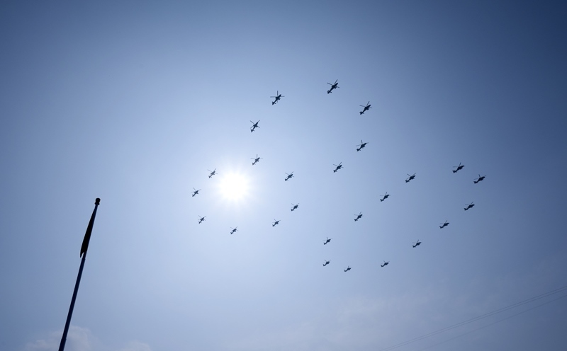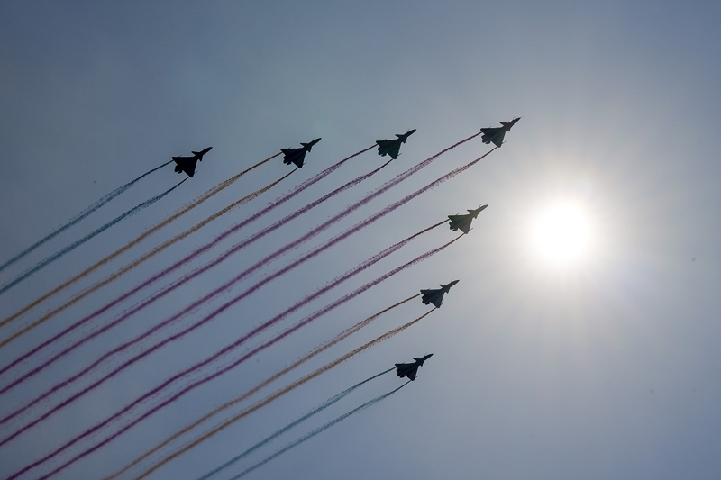 9月3日,紀(jì)念中國人民抗日戰(zhàn)爭(zhēng)暨世界反法西斯戰(zhàn)爭(zhēng)勝利80周年大會(huì)在北京隆重舉行。這是空中梯隊(duì)接受檢閱。