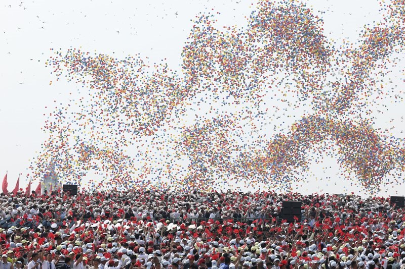 9月3日,紀(jì)念中國人民抗日戰(zhàn)爭(zhēng)暨世界反法西斯戰(zhàn)爭(zhēng)勝利80周年大會(huì)在北京隆重舉行。這是紀(jì)念大會(huì)現(xiàn)場(chǎng)放飛氣球。
