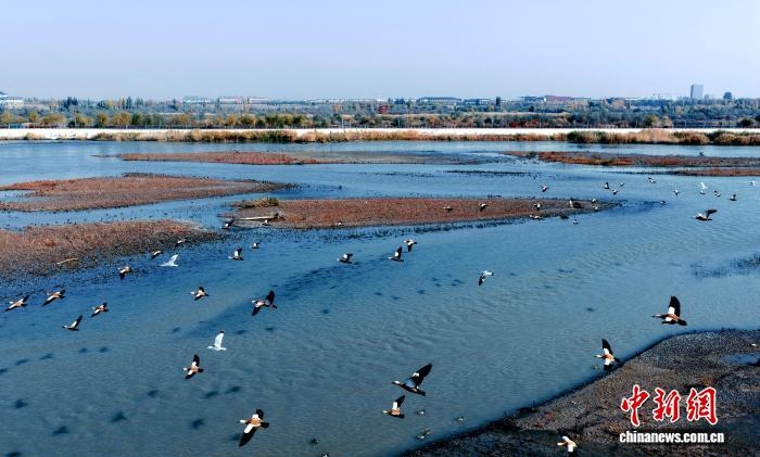 中新網(wǎng)烏魯木齊10月28日電 (黨艷麗)深秋時(shí)節(jié),成群結(jié)隊(duì)的灰雁“到訪”新疆可克達(dá)拉市。它們或飛翔在湛藍(lán)的天空上,發(fā)出陣陣鳴叫聲;或集結(jié)在伊犁河可克達(dá)拉市段河畔,補(bǔ)給“能量”,為接下來的遷徙旅程做足準(zhǔn)備。