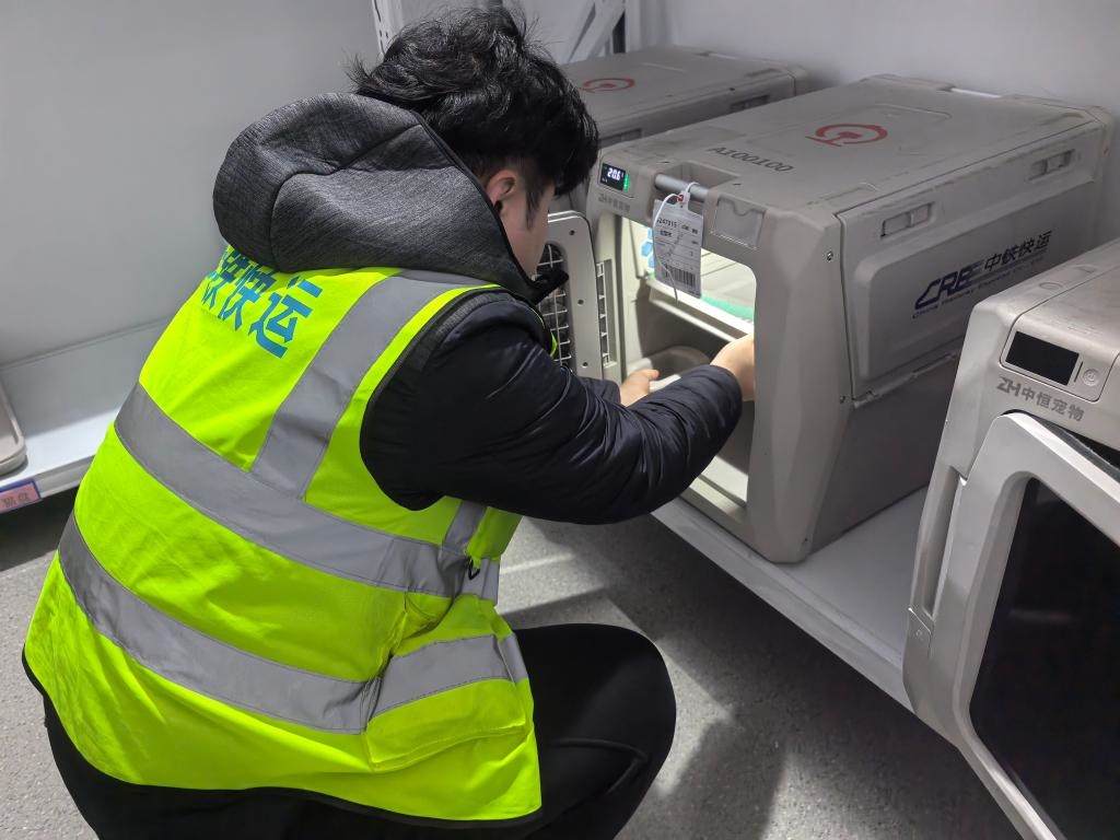 中鐵快運太原南站營業(yè)部業(yè)務負責人武鑫介紹:“我們自今年10月啟動高鐵寵物托運服務試點以來,已經(jīng)托運過寵物貓、寵物狗等。旅客可以在12306官方平臺或到營業(yè)部現(xiàn)場辦理托運業(yè)務。托運前,需要提交相關部門的檢疫證明。工作人員會對寵物運輸箱和列車環(huán)境進行嚴格消毒。寵物運輸箱內(nèi)還帶有攝像頭,主人可以通過監(jiān)控查看自家寵物的實時狀態(tài)。我們配備的工作人員,也會定時檢查寵物狀態(tài),提供必要的安撫和飲水?!?/p>