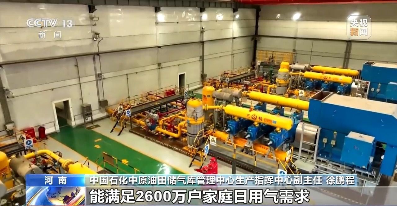 中國石化中原油田儲氣庫管理中心生產指揮中心副主任 徐鵬程:入冬前,中原油田儲氣庫群完成注氣儲備9.4億立方米,較去年多儲備1.2億立方米,達到歷史最高水平。在用氣高峰期,能滿足2600萬戶家庭的日用氣需求。