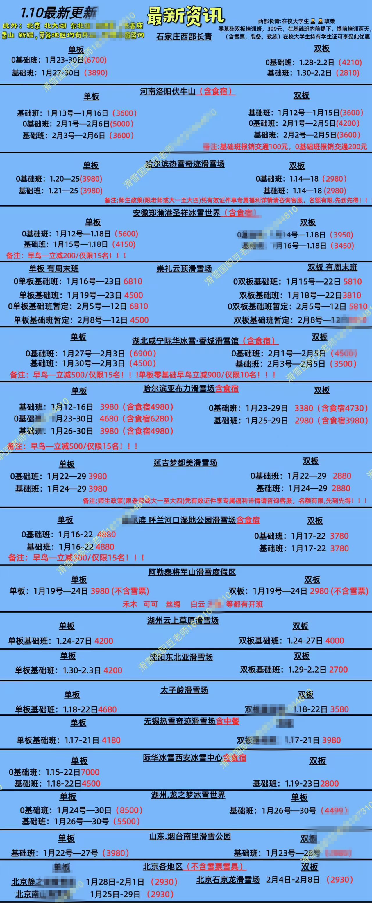 記者以“零基礎(chǔ)”滑雪者想要報(bào)考“滑雪國職五級(jí)”為由,咨詢了多家滑雪培訓(xùn)機(jī)構(gòu)。一位培訓(xùn)基地的豆先生展示了多個(gè)能提供培訓(xùn)的雪場名單,涉及河北石家莊、河南洛陽、湖北咸寧、黑龍江哈爾濱等多地。當(dāng)記者表示北京及周邊雪場更加方便時(shí),豆先生隨即發(fā)來了包含培訓(xùn)班日期、地點(diǎn)、價(jià)格等一系列報(bào)名細(xì)則的“國職教練證考試資訊”。