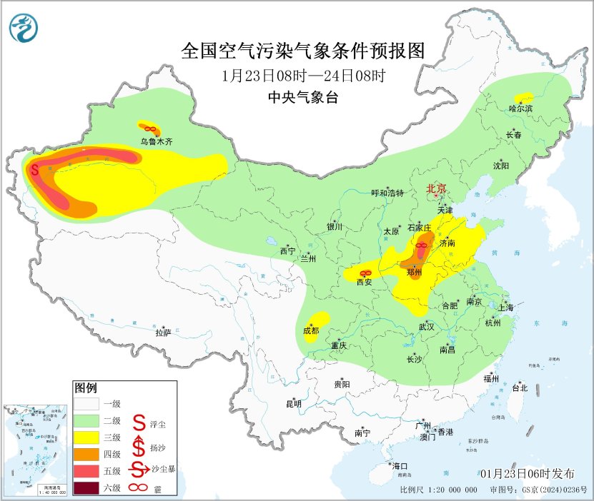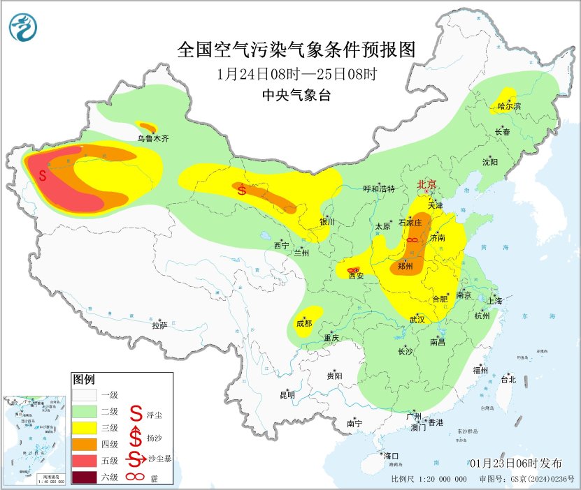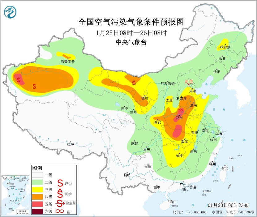 23日起,區(qū)域大部大氣擴散條件逐步轉(zhuǎn)差,山西中南部、陜西關(guān)中等地的部分地區(qū)有輕至中度霾。