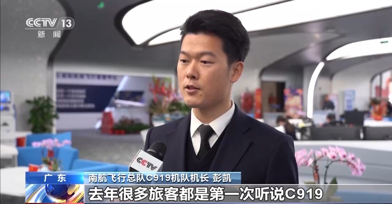 南航飛行總隊(duì)C919機(jī)隊(duì)機(jī)長(zhǎng) 彭凱:去年很多旅客都是第一次聽(tīng)說(shuō)C919,今年可能有些不一樣,很多旅客已經(jīng)主動(dòng)選乘去拍照打卡這個(gè)機(jī)型了。