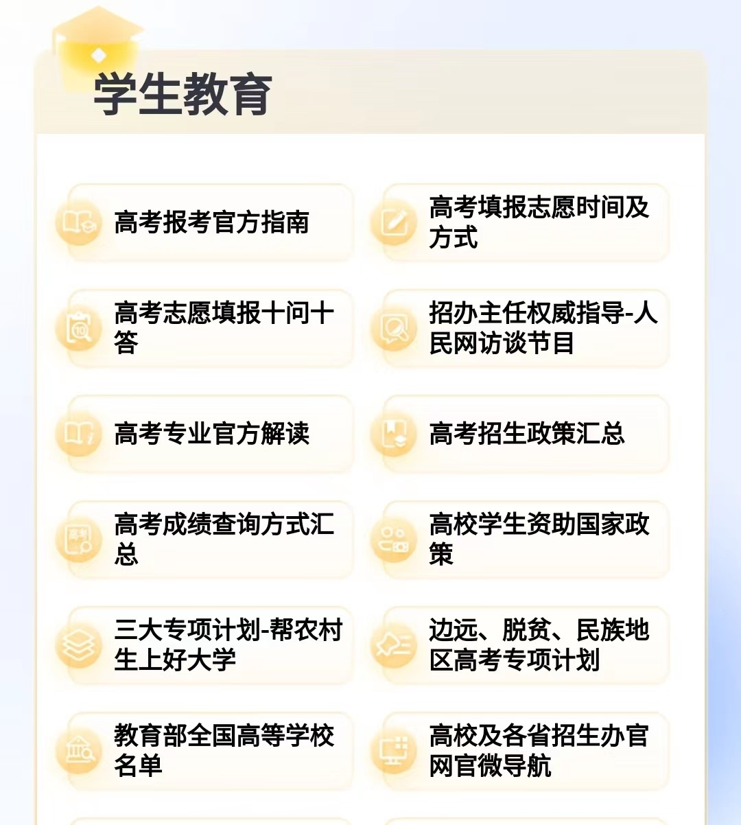 聚焦于高考生群體,“人民網(wǎng)+”客戶端便民服務(wù)匯總小程序聚合多項實用資訊,為考生及家長提供權(quán)威、便捷的服務(wù):