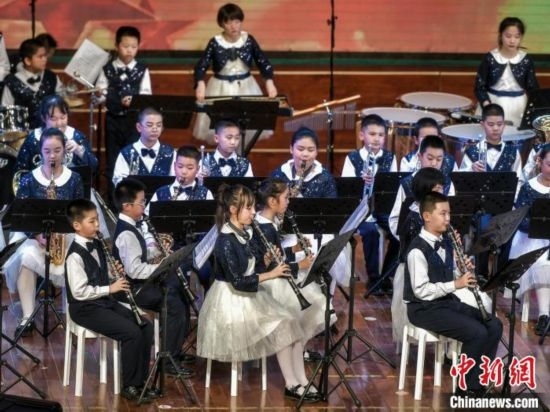 12月27日,新疆烏魯木齊市沙依巴克區(qū)教育系統(tǒng)“龍行龘龘 樂動童年”2024年交響管樂新年音樂會在該市青少年宮舉辦,來自烏魯木齊市第27小學(xué)的交響管樂團(tuán)演奏了《紅旗頌》、《茉莉花》等經(jīng)典曲目,并與絲路名師合唱團(tuán)合作演出《青春之舞》、《最炫民族風(fēng)》等曲目。據(jù)介紹,該交響管樂團(tuán)成立于2014年,規(guī)模從最初的40余人發(fā)展到現(xiàn)今近70人,團(tuán)員平均年齡10歲。