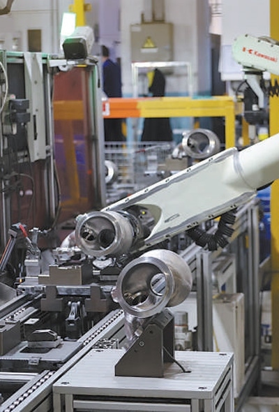 江蘇無錫職業(yè)技術(shù)學(xué)院教師團隊為蠡湖增壓技術(shù)公司研發(fā)的殼體機器人自動化去毛刺工作站正在作業(yè)。無錫職業(yè)技術(shù)學(xué)院黨委宣傳部供圖
