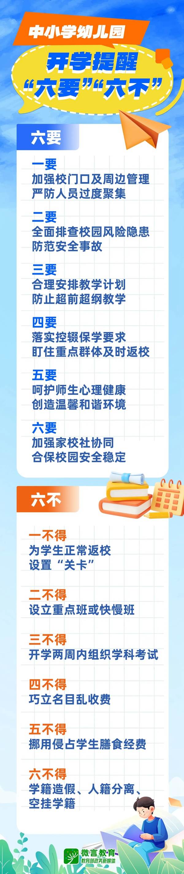 一圖看懂!中小學(xué)幼兒園開(kāi)學(xué)提醒“六要”“六不”