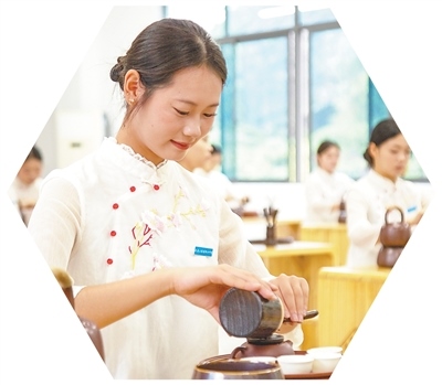 福建武夷山市在職業(yè)學校開設茶藝、茶葉加工等專業(yè),為當?shù)夭璁a業(yè)發(fā)展培養(yǎng)技能人才。