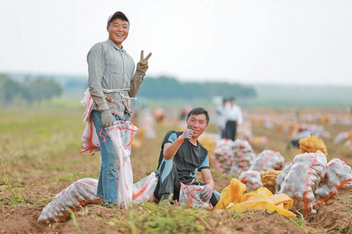 近日,在烏蘭察布市察右后旗白音察干鎮(zhèn)建設(shè)村馬鈴薯種植基地,見到該村連營(yíng)農(nóng)業(yè)機(jī)械合作社負(fù)責(zé)人郝軍時(shí),他正忙得不亦樂乎。據(jù)了解,今年馬鈴薯銷售價(jià)格可觀,他們的合作社迎來了又一個(gè)豐收年。