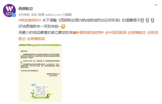 今日,中國(guó)國(guó)際航空、海南航空、天津航空、西部航空等多家航空公司發(fā)布通知,根據(jù)國(guó)家發(fā)展改革委、民航局的相關(guān)文件精神,自2022年1月5日零時(shí)起(出票日期),取消征收國(guó)內(nèi)航線燃油附加費(fèi)。