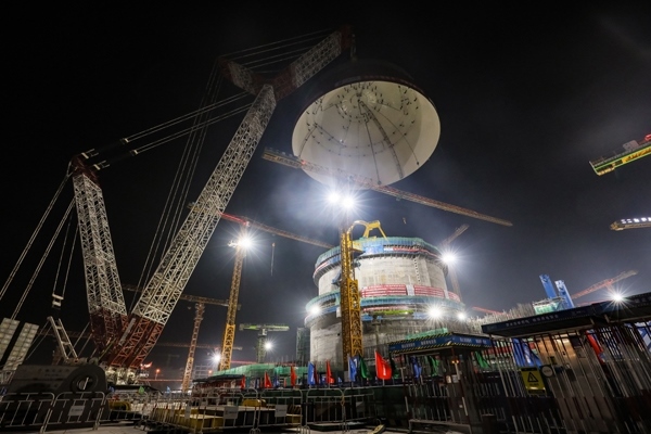 海南昌江核電二期3號機(jī)組內(nèi)穹頂成功吊裝。宋琨陽攝