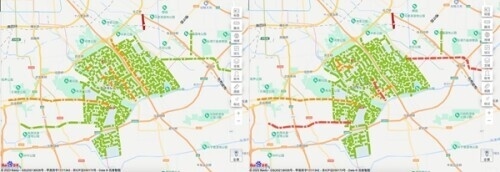 亦莊4月21日與4月28日晚高峰(17:00-19:00)交通擁堵對比