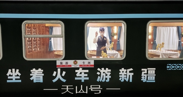 “坐著火車游新疆·天山號”旅游列車。中國鐵路烏魯木齊局集團(tuán)公司