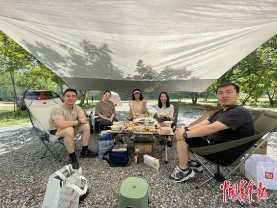 露營基地的露營者們。圖片均為中青報(bào)·中青網(wǎng)見習(xí)記者 裴思童/攝