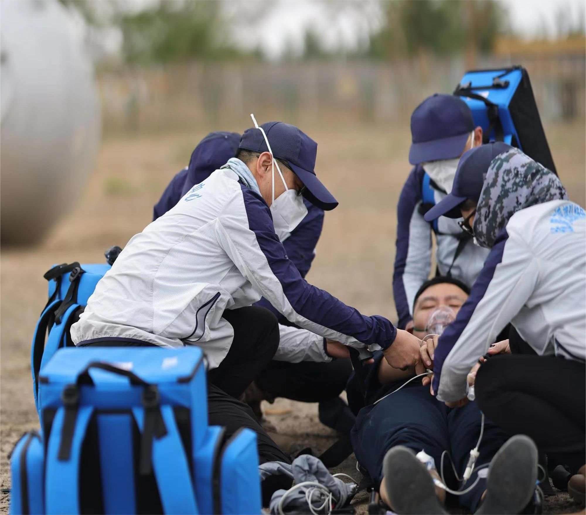 “習(xí)主席指出,打仗在某種意義上講就是打保障。作為醫(yī)療救護(hù)隊(duì),保障航天員的生命安全就是打勝仗,只要存在0.01%的危險(xiǎn),我們就必須做到100%的準(zhǔn)備?!鄙裰圯d人飛行任務(wù)醫(yī)療救護(hù)隊(duì)隊(duì)長顧建文介紹道。主著陸場涵蓋沙漠、丘陵、湖泊、戈壁等復(fù)雜地形,為順利完成任務(wù),率隊(duì)到達(dá)著陸場的這些天,顧建文一刻也沒有休息。他帶領(lǐng)醫(yī)療隊(duì)員乘坐直升機(jī)機(jī)動1800公里,飛越巴丹吉林沙漠,全面考察地形地貌,細(xì)致完善救治方案,實(shí)地調(diào)研后支醫(yī)院應(yīng)急醫(yī)療準(zhǔn)備情況。