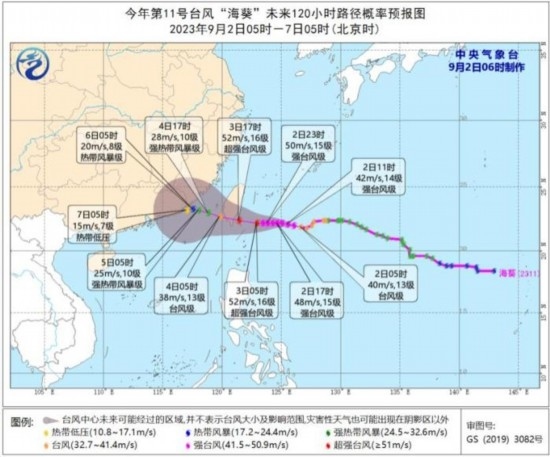 今年第9號臺風(fēng)“蘇拉”未來60小時路徑概率預(yù)報圖
