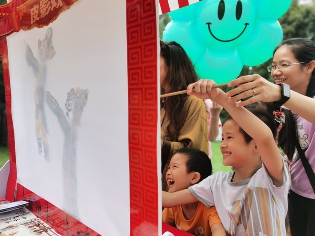 在上海桂林公園舉辦的“唐韻中秋”活動上,孩童體驗(yàn)皮影戲。 新華社記者 陳愛平 攝