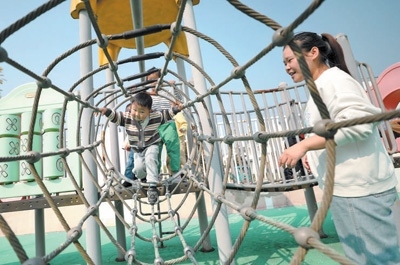 在江蘇宿遷沭陽縣,許多社區(qū)興建兒童活動(dòng)中心,增添兒童游樂設(shè)施。丁華明攝