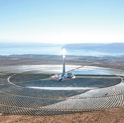 青海海南藏族自治州,太陽(yáng)能生態(tài)發(fā)電園區(qū)內(nèi)的50兆瓦熔鹽塔式光熱電站。本報(bào)記者 伊 霄攝