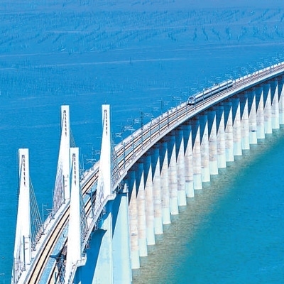 福廈高鐵湄洲灣跨海大橋,列車飛馳而過(guò)。新華社記者 魏培全攝