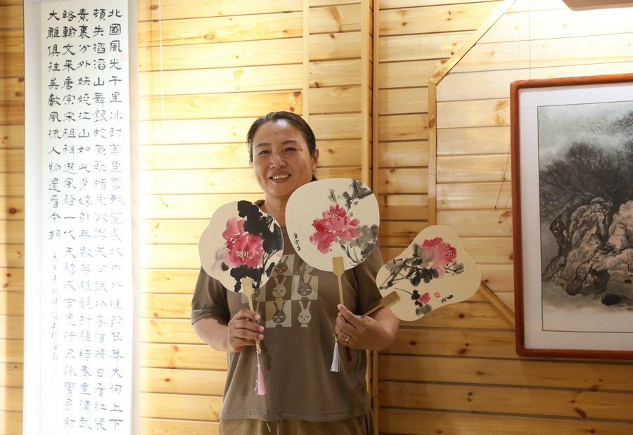 當(dāng)?shù)禺嫾艺故緞?chuàng)作的作品 記者 張偉攝影