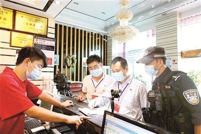 圖為近日,云南省宜良縣紀(jì)委監(jiān)委聯(lián)合相關(guān)部門(mén)到轄區(qū)內(nèi)酒店了解情況。易盛芳攝