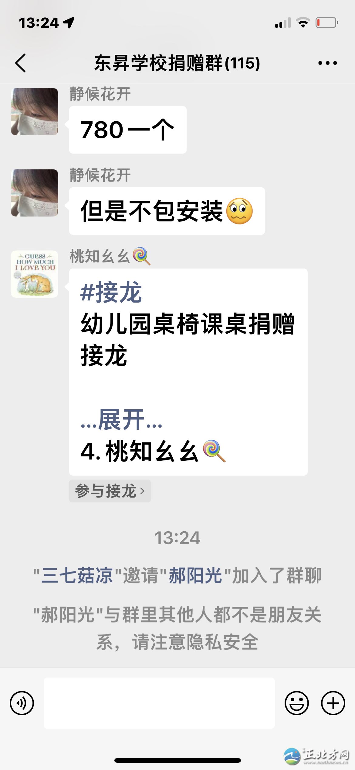張慧聰對學(xué)校需要置辦的設(shè)備列了清單。具體捐款數(shù)目,他說,目前還在統(tǒng)計中,最終會在第一時間向社會公布賬目。然而在開學(xué)季,由于大家過多的關(guān)注,作為一所民辦學(xué)校校長,他也遇到了前所未有的壓力。目前,學(xué)校的情況也引起了教育部門的關(guān)注。他用沙啞的聲音說:“我替孩子們感謝大家了,感謝你們?yōu)楹⒆觽冋嫘牡母冻?。”得知該校目前的狀況,大家紛紛伸出援手,有人購買了10個書桌,有一位音樂老師要捐贈一臺舊鋼琴,還有愿意去支教的,愛心接龍不停地在群里進(jìn)行。大家紛紛通過自媒體、發(fā)朋友圈的形式來發(fā)動身邊的力量。本報記者也聯(lián)系了一家制衣廠、一所小學(xué)、一家基金會準(zhǔn)備為孩子們捐贈衣服。