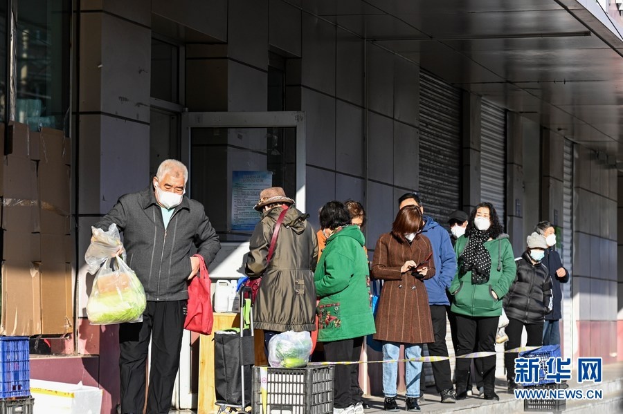 11月17日,市民在呼和浩特市新城區(qū)的商店排隊購物。新華社記者 王澤聰 攝