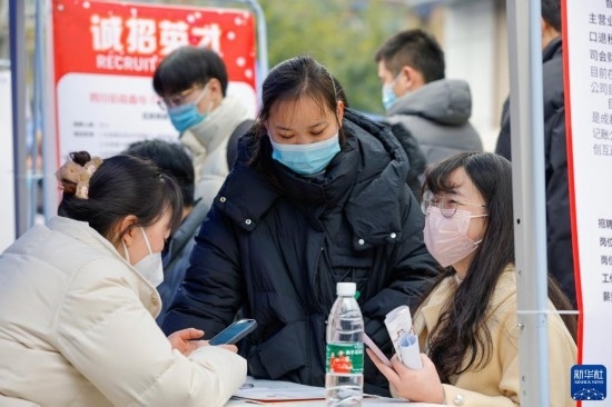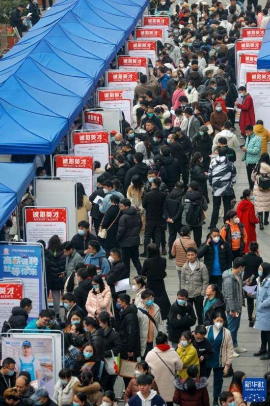 2月17日,人們?cè)谥袊?guó)成都人力資源服務(wù)產(chǎn)業(yè)園查看招聘信息,尋找工作機(jī)會(huì)。