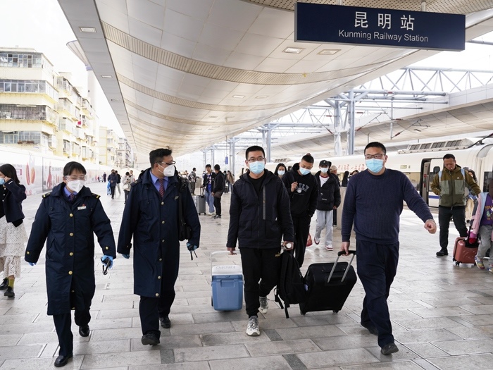 中國鐵路昆明局集團有限公司迅速啟動應(yīng)急預(yù)案,配合制定轉(zhuǎn)運方案,協(xié)助開展相關(guān)工作,在進站安檢、乘車補票、到站轉(zhuǎn)運等環(huán)節(jié)開辟全程“綠色通道”,為守護生命健康保駕護航。
