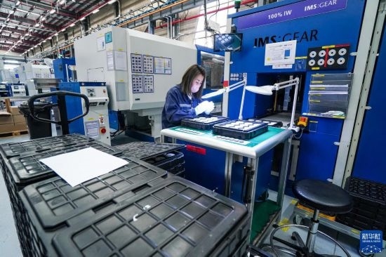 工人在位于太倉市高新區(qū)的威爾斯新材料(太倉)有限公司生產(chǎn)車間內(nèi)進(jìn)行加工作業(yè)(3月16日攝)。