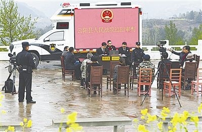 圖①:巡回審判車開向坪東村。