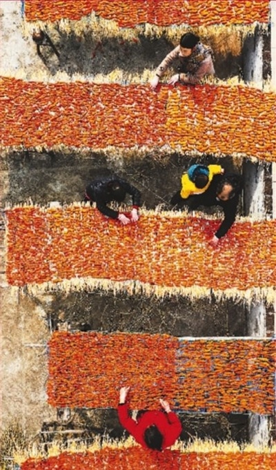 2022年12月16日,湖南省永州市新田縣枧頭鎮(zhèn)大觀堡村,村民在晾曬紅薯干。近年來(lái),該縣利用訂單服務(wù)和農(nóng)村電商平臺(tái),實(shí)現(xiàn)農(nóng)產(chǎn)品線上線下銷售。 劉貴雄攝(人民視覺(jué))
