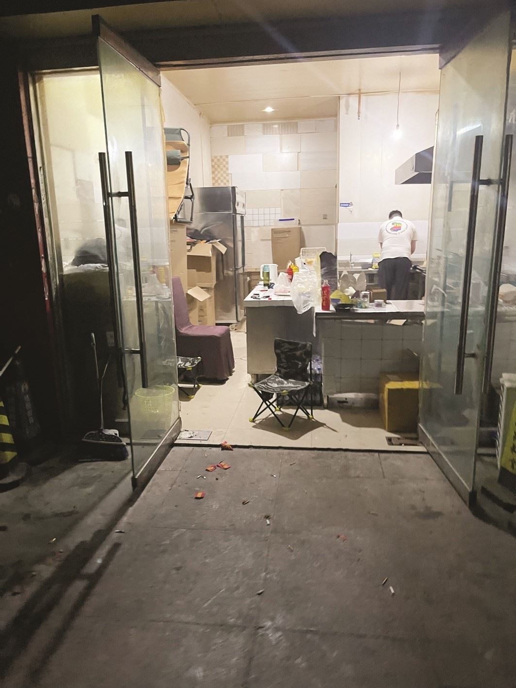 記者當(dāng)天夜里來到了王女士所說的“寫字樓”——位于揚(yáng)州市望月路與百祥路交會(huì)口的“廣華星都會(huì)”。記者跟著一位外賣小哥一起走進(jìn)大樓內(nèi)部,扶梯早已停用,樓內(nèi)破敗不堪,還沒有上到二樓,一股濃烈的臭味就已經(jīng)撲鼻而來。凌晨兩點(diǎn),二樓依然燈火通明。這里也分布著大大小小七八家外賣店,大部分還都在營業(yè)中。除了環(huán)境臟亂差以外,記者找到了臭味的源頭——樓層中心的廁所,整層樓彌漫的味道讓人“上頭”。圍繞著這個(gè)廁所分布的外賣店,還在認(rèn)真地經(jīng)營著“美食”。記者打開外賣平臺(tái),發(fā)現(xiàn)廁所正對(duì)面的“××臭豆腐”月銷訂單2000+。